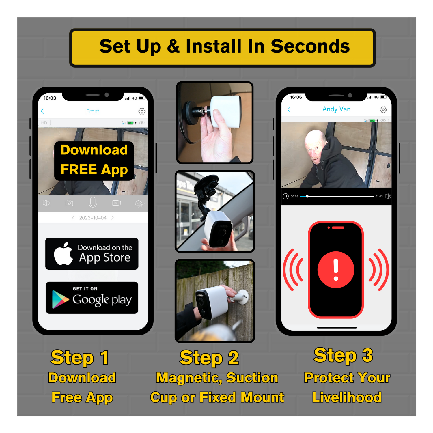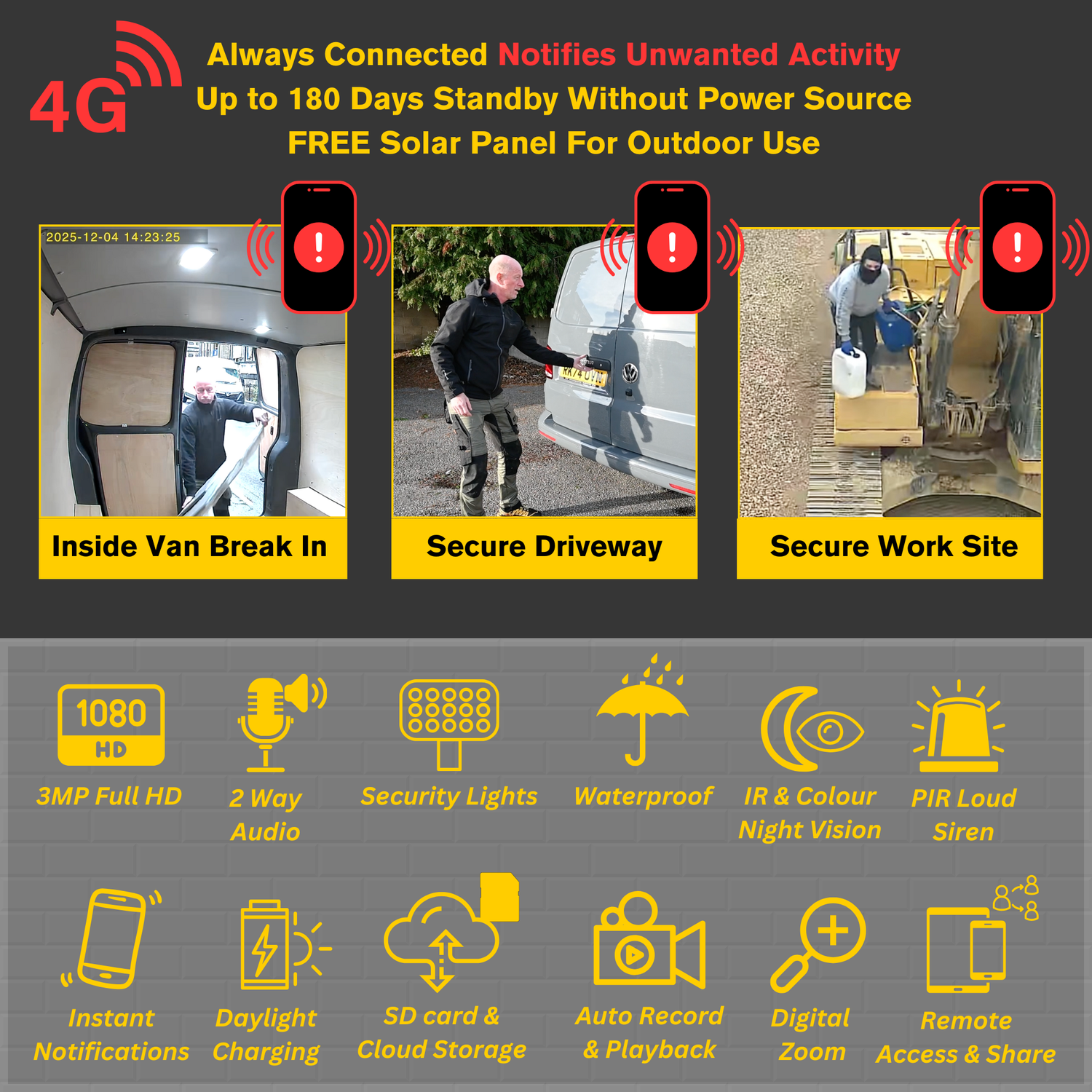 Guard My Van, The Ultimate 4G Security Camera For Your Van - Alerts, Records, and Deters Intruders with Siren & Security Lights