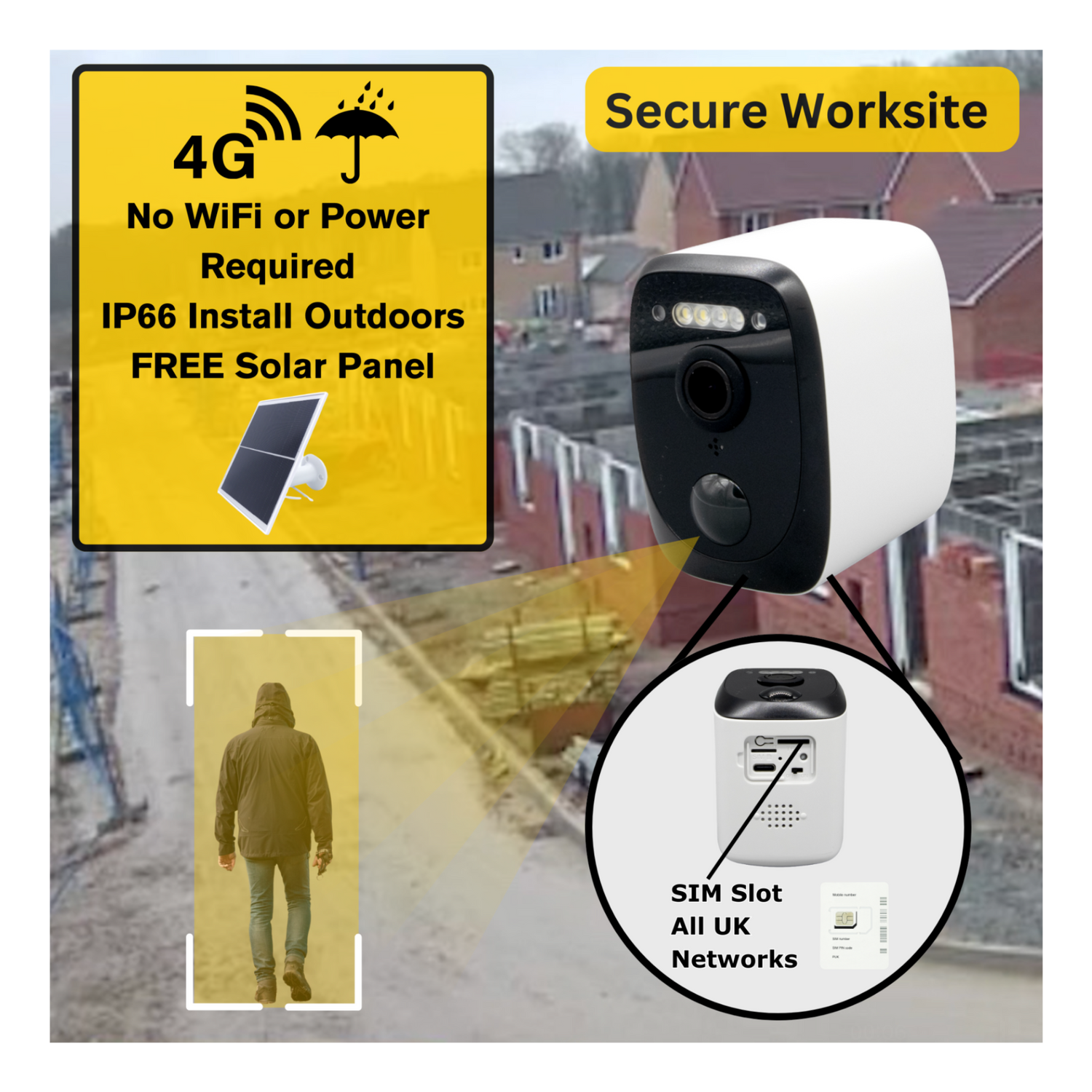 Install outside anywehere - solar charged. Fully IP66 rated weatherproof and 4G (SIM card) connection. Simply install anywhere outside with the free solar panel.